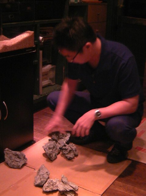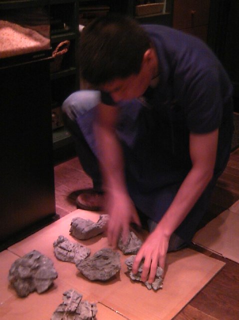 今回は、お客が石を選び、3人の店員がレイアウト(石組みの構図)を作るというもの。