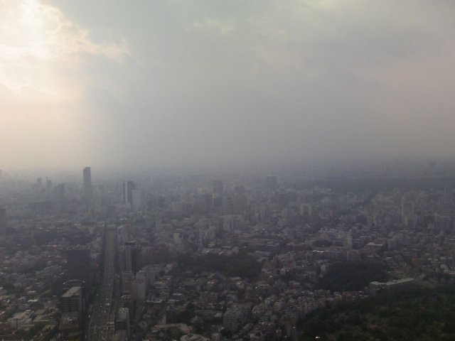 隅田川の向こうぐらいまでは、何とか見えています。