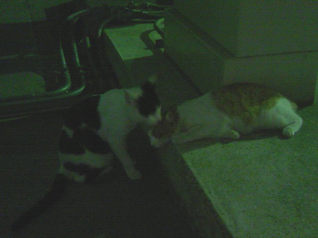 左がおとぉさん(白黒)で、右が子ども(白薄茶)。