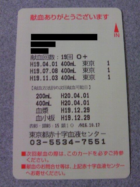 答えは、今年1回目の献血をした日から1年後の2008/4/1。