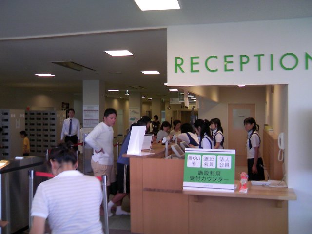 この受付でカードと靴ロッカーのかぎを渡すと、更衣室のロッカーの鍵兼ICチップをくれます。