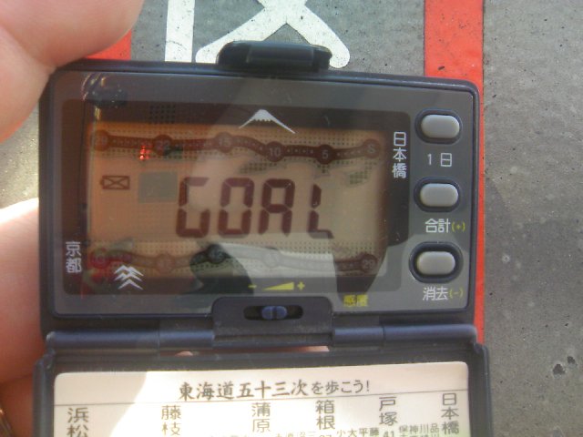 ずいぶん前に購入した「東海道五十三次万歩計」が本郷三丁目近くでついに京都に到着。