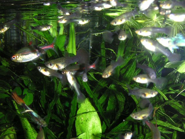 しかもそろそろ限界と思われたグローライトテトラが、まだ10匹近くがんばってます。