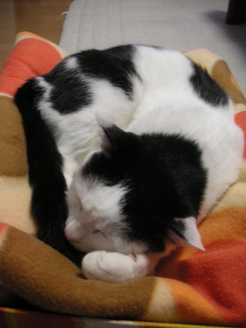 しかたがないので、雷の音はやや大きいのですが、別の部屋の寝床に隠れることにしました。