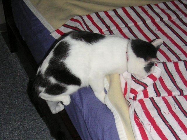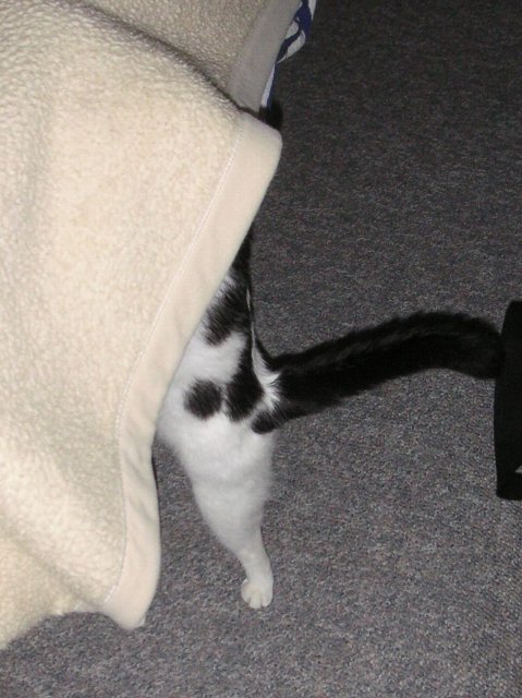 意地悪なことに、こちらもしっかりとパパがベッドメイキングしてあったのですが、賢いボクは、ちゃんと隙間を見つけて入り込むことに成功しました。