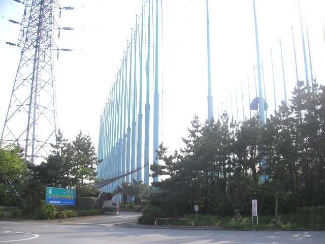 高浜の交差点を海方向に曲がると、産業廃棄物の中間処理業者の建物に混じってゴルフの打ちっぱなしがあります。