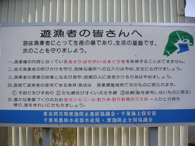 そんなわけで、とっくにこの近くで漁業をやる方々(行徳漁協)はいなくなったのですが、その向こう側にはまだ漁業権を持っている人がいるようで、一般の人が「漁」をすることはできませんが「釣り」は問題なくできます。